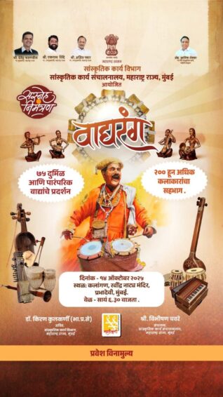 महाराष्ट्र शासनाच्या सांस्कृतिक कार्य विभाग आणि संचालनालयाच्या वतीने अलीकडेच “दुर्मिळ व पारंपारिक लोकवाद्यांचे प्रदर्शन” मुंबईत आयोजित करण्यात आले. या प्रदर्शनाला मुंबईकरांनी प्रचंड उत्स्फूर्त प्रतिसाद दिला. शहरवासीयांनी ग्रामीण परंपरेचा हा सजीव वारसा पाहून कुतूहल आणि अभिमान व्यक्त केला.