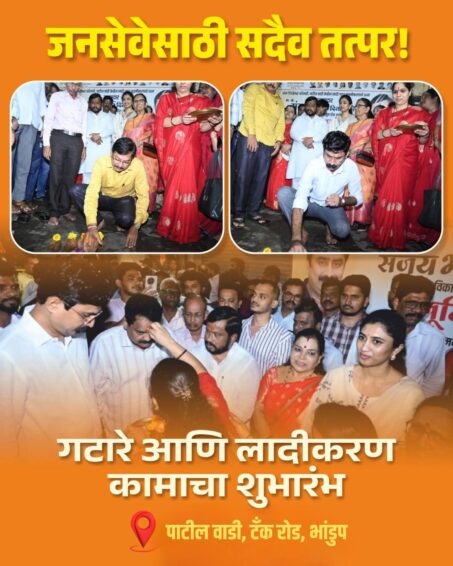 देव दर्शन आणि काम हे एकत्र करत रजोल पाटील यांनी भांडूप येथील पाटील वाडी, टॅंक रोड येथे गटारे आणि लादीकरण कामाचा शुभारंभ केले.