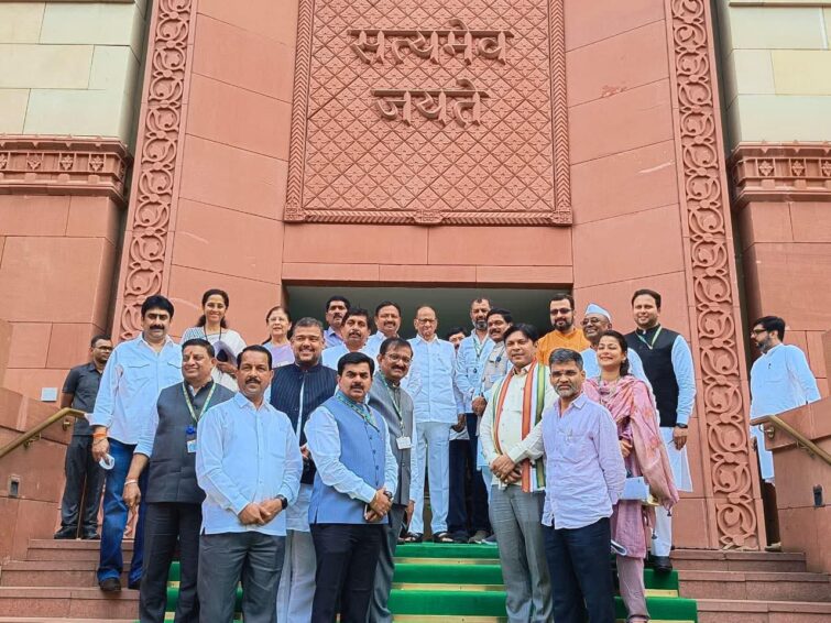 यावेळी राष्ट्रवादी कॉंग्रेस पक्षाचे नेते आदरणीय शरदचंद्र पवार साहेब व इंडिया आघाडीतील संसदेतील सहकारी खासदार यांच्या समवेत.ML/ML/MS